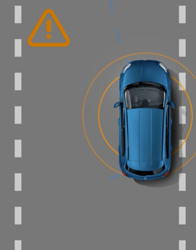 The system alerts you when you unintentionally change lane without using side arrows. Lane assist will warn you directly on the Cluster and gently move the steering wheel to bring you back in lane. Available in the Sport version only.